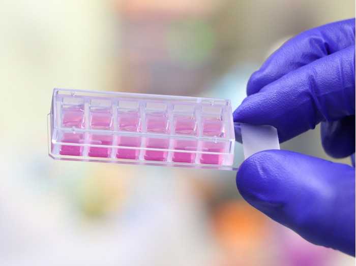 自粘性的12孔硅膠插件粘在一個標準的玻璃載玻片上
