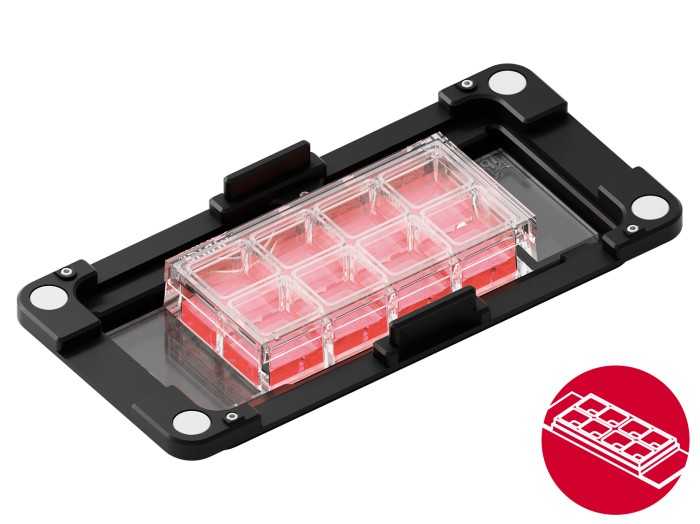 • 載玻片支架,用于使用ibidi µ-Slide進行活細胞成像實驗的載玻片支架