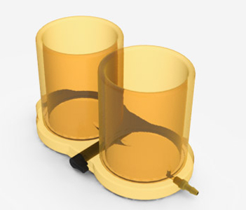 The autoclavable Gradient Mixer material is Ultem (Polyetherimide). Ultem is a tough, rigid, high strength thermoplastic that can withstand prolonged exposure to high temperatures and repeated sterilization. The gradient mixer has a translucent / light amber color that allows direct observation of the fluids.