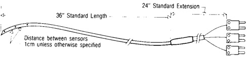 •  Teflon sheathed thermocouple wires are implanted with regular hypodermic needle. 14ga. or 17ga.